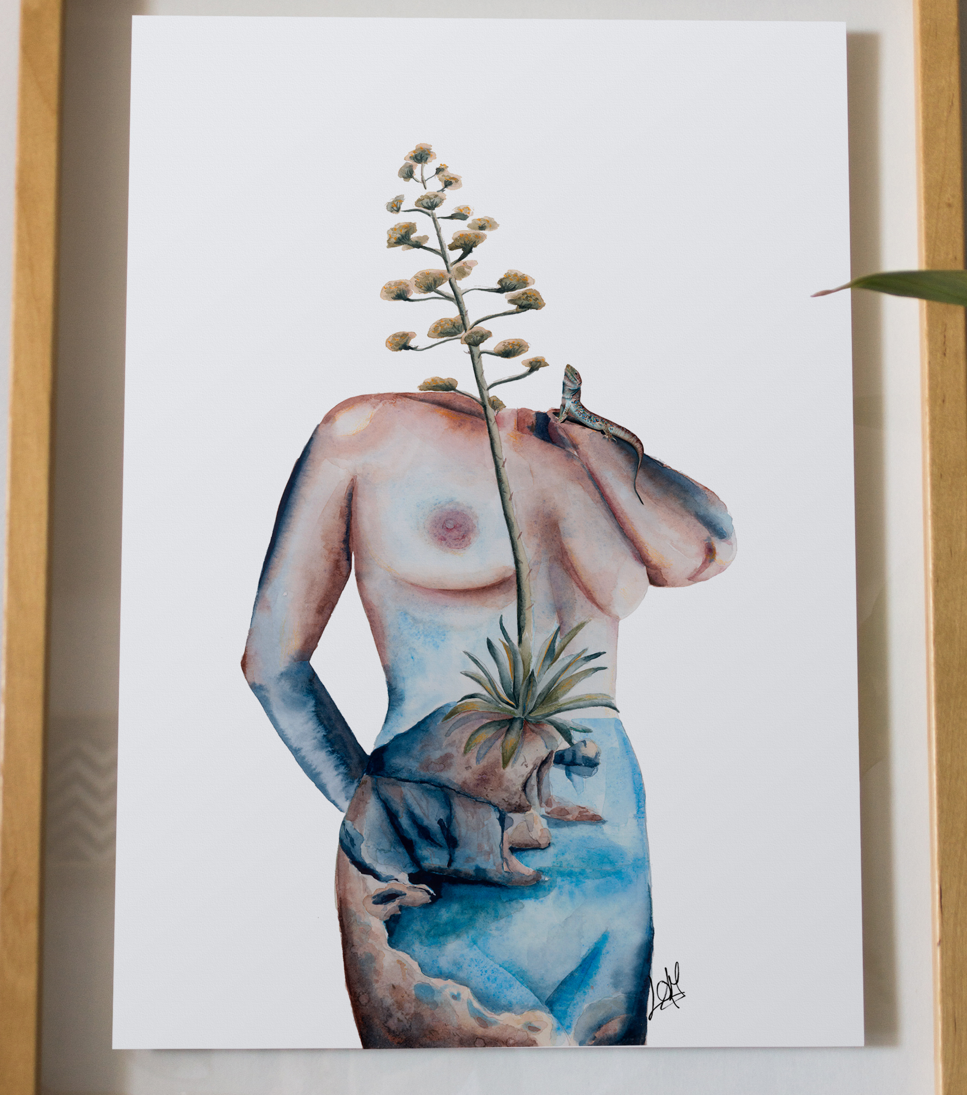 Lámina impresa por láser de alta resolución que garantiza durabilidad en papel mate 280 gr. Este es un PRINT (impresión digital) de la obra original realizada en acuarela.