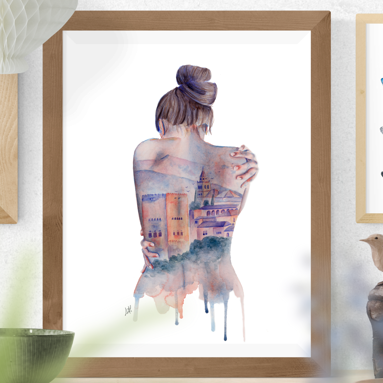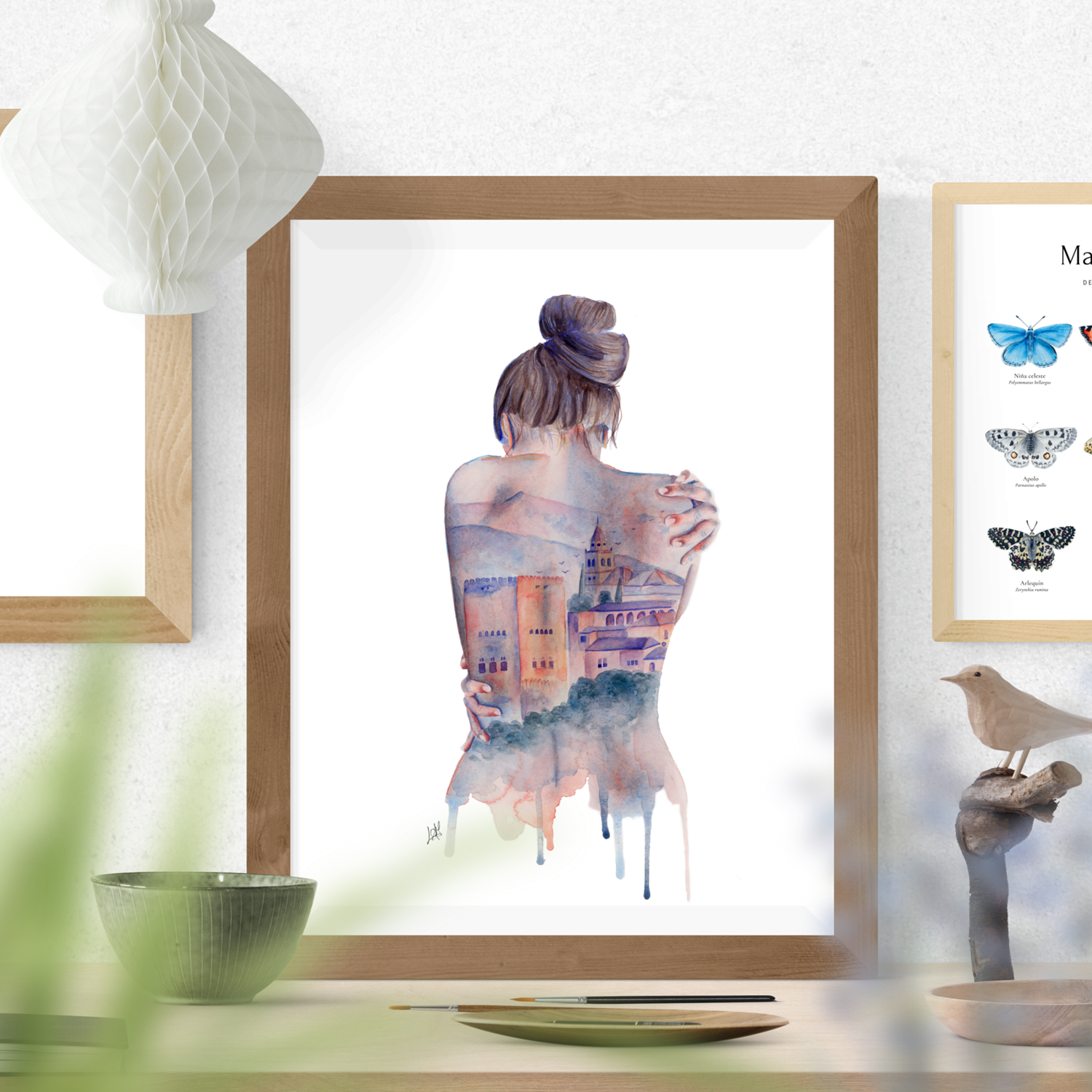 Lámina impresa por láser de alta resolución que garantiza durabilidad en papel mate 280 gr. Este es un PRINT (impresión digital) de la obra original realizada en acuarela.