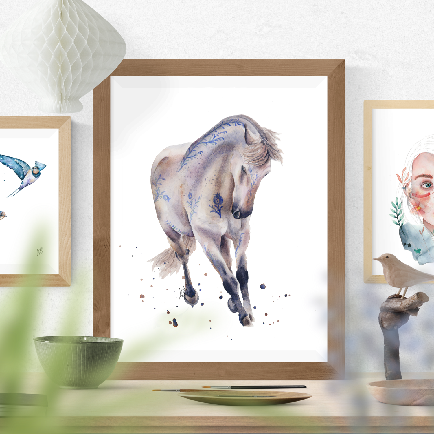 Lámina impresa por láser de alta resolución que garantiza durabilidad en papel mate 280 gr. Este es un PRINT (impresión digital) de la obra original realizada en acuarela.