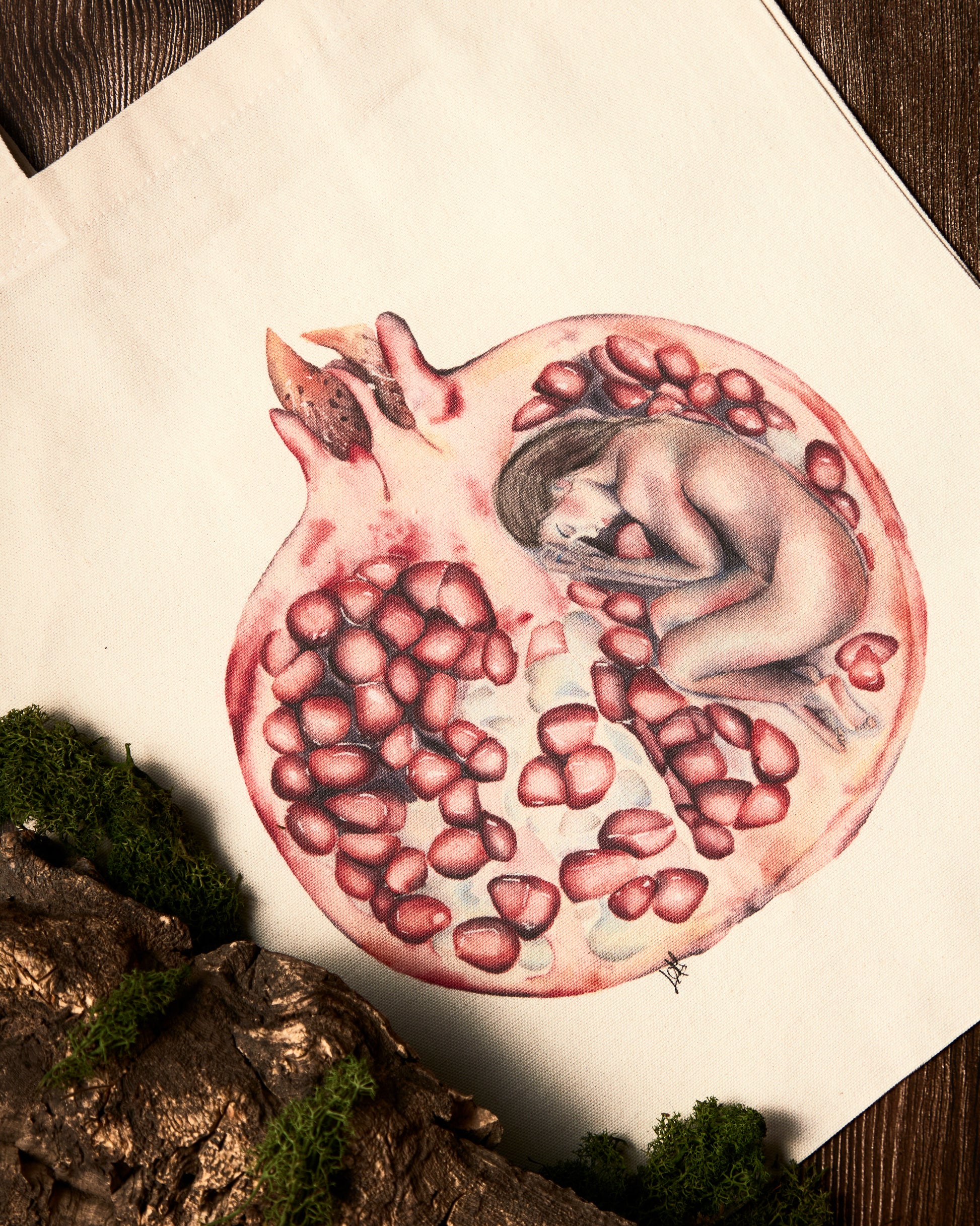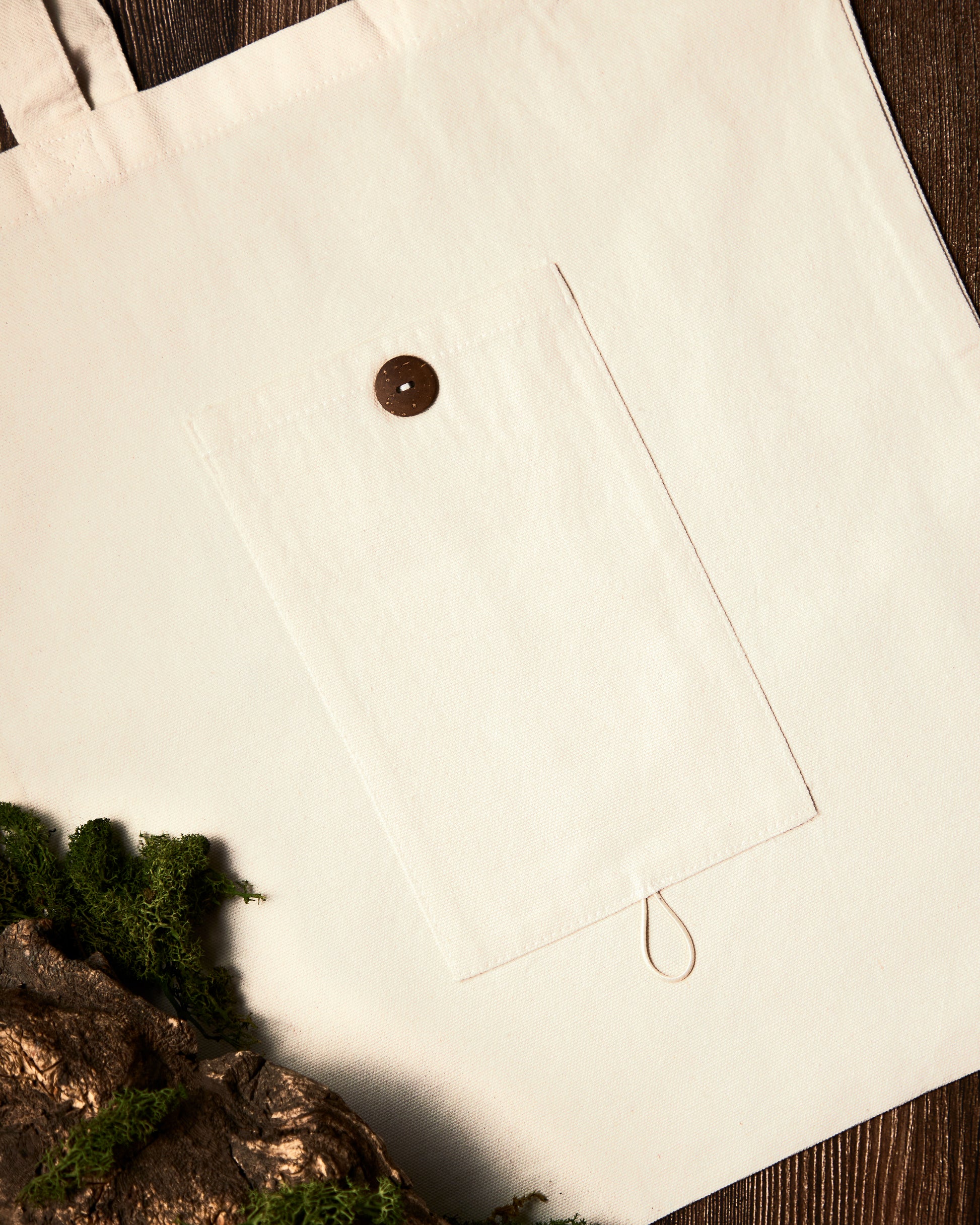 Bolso 100% algodón de 240g. En la parte trasera tienen un bolsillo muy útil para guardar el móvil o llaves. Se puede doblar sobre sí mismo y cerrar con un botón como se ve en la imagen.